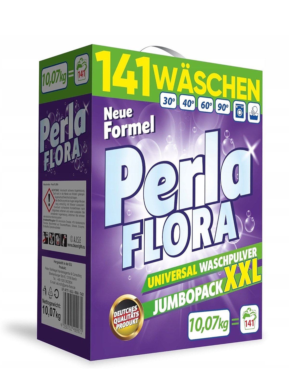 Ieškote efektyvių, efektyvių ir saugių skalbimo miltelių? Vokiški PERLA FLORA Universalūs milteliai yra puikus sprendimas spalvotiems ir baltiems audiniams skalbti, kuris užtikrins nepriekaištingą švarą ir ilgalaikį jūsų drabužių šviežumą. Dėl pažangios formulės jis efektyviai pašalina net sunkiai įveikiamas dėmes, išsaugo spalvų intensyvumą ir medžiagų struktūrą. Kodėl verta rinktis PERLA FLORA Universal? ✔ Universalus naudojimas – skirtas skalbti tiek spalvotus, tiek baltus audinius.✔ Veikia plačiame temperatūrų diapazone – efektyvumas nuo 30°C iki 90°C, kas leidžia pritaikyti skalbimo programą pagal savo poreikius.✔ Be fosfatų ir ceolitų – formulė saugi aplinkai ir švelni odai.✔ Spalvos apsauga – specialūs polimerai, neleidžiantys audiniams išblukti. medžiagų, nepažeidžia pluoštų.✔ Ilgai išliekantis gaivumas - suteikia drabužiams malonų kvapą, kuris išlieka ilgai.✔ Ekonomiška pakuotė - 10,07 kg = 141 skalbimas, idealus sprendimas šeimoms ir taupymą vertinantiems žmonėms. Vokiškos kokybės galia Jūsų skalbykloje PERLA FLORA Universal – pagal aukščiausius vokiškus kokybės standartus sukurtas produktas, užtikrinantis jo patikimumą ir efektyvumą. Milteliuose yra fermentų, muilo ir apsauginių polimerų, kurie efektyviai pašalina nešvarumus ir tuo pačiu rūpinasi audinių būkle. Dėl efektyvios formulės, norint pasiekti puikų rezultatą, reikia tik nedidelio miltelių kiekio, o tai reiškia, kad sutaupoma energijos ir pinigų. Kaip naudoti PERLA FLORA Universalią pudrą? ✔ Skalbimas mašina – supilkite reikiamą kiekį miltelių į dozatorių ir pasirinkite tinkamą skalbimo programą.✔ Skalbimas rankomis – ištirpinkite miltelius vandenyje ir pamirkykite drabužius, kad pašalintumėte nešvarumus.✔ Dozę koreguokite – pagal purvo lygį ir vandens kietumą, kad gautumėte geriausius rezultatus. Gaminio specifikacijos Tipas: Universalūs skalbimo milteliai (spalvoti ir balti audiniai) Svoris: 10,07 kg Efektyvumas: 141 skalbimas Skalbimo temperatūra: 30°C - 90°C Veikliosios medžiagos: Fermentai, muilas, apsauginiai polimerai Be fosfatų ir ceolitų PERLA FLORA Universal - efektyvumas, saugumas ir vokiška kokybė vienoje pakuotėje. Užsisakykite dabar ir mėgaukitės puikiai švariais drabužiais kiekvieną dieną!
