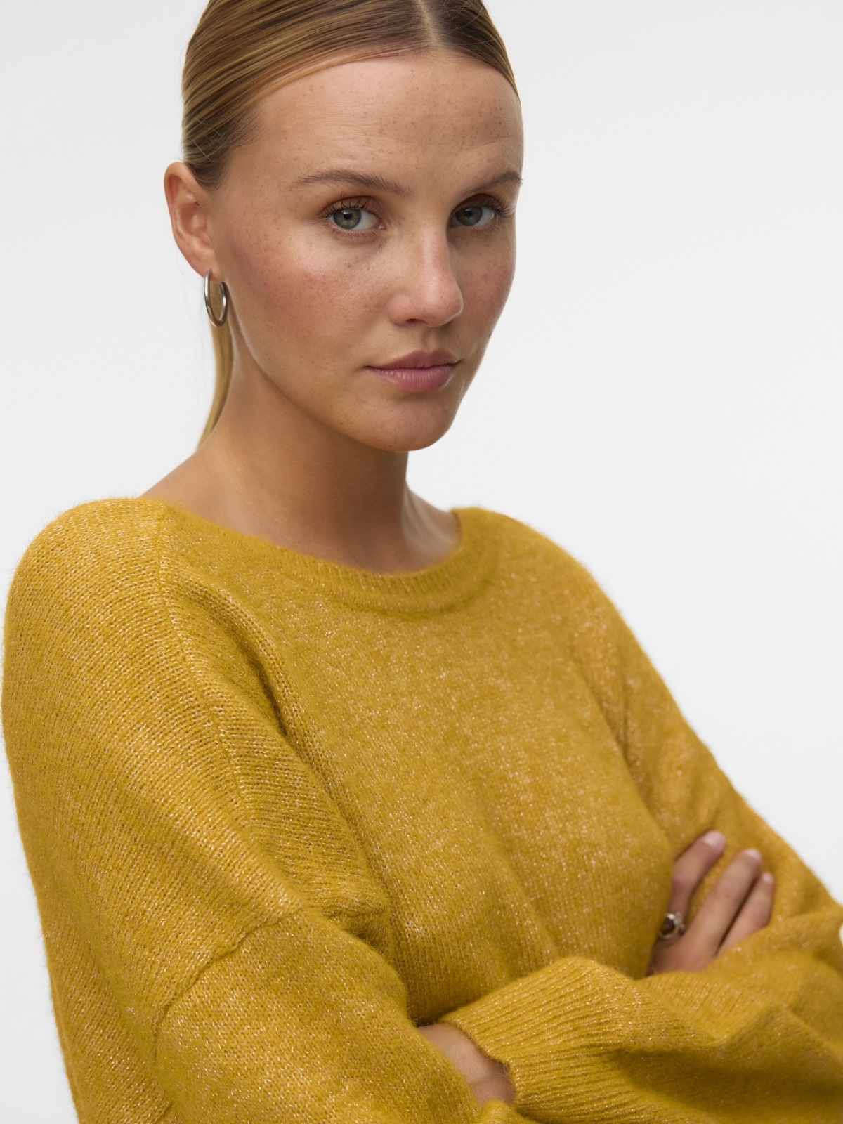 31% poliesteris, 26% akrilanas, 10% metalizuotas siūlas, 5% vilna, 2% elastanas.