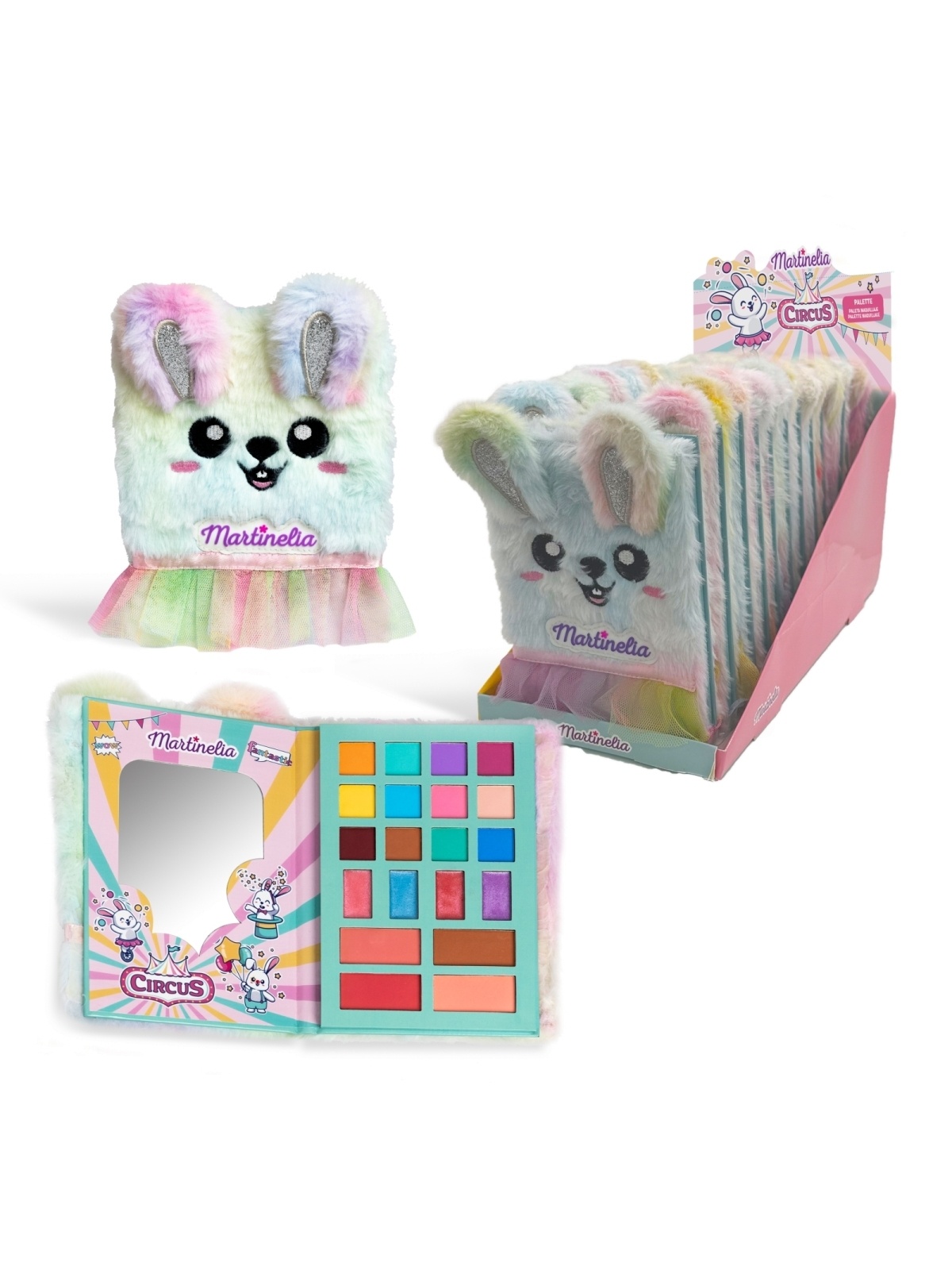Rinkinį sudaro: akių šešėliai (12 vnt.), lūpų blizgesiai (4 vnt.), skaistalai ir bronzantas (4 vnt.) vaikams.