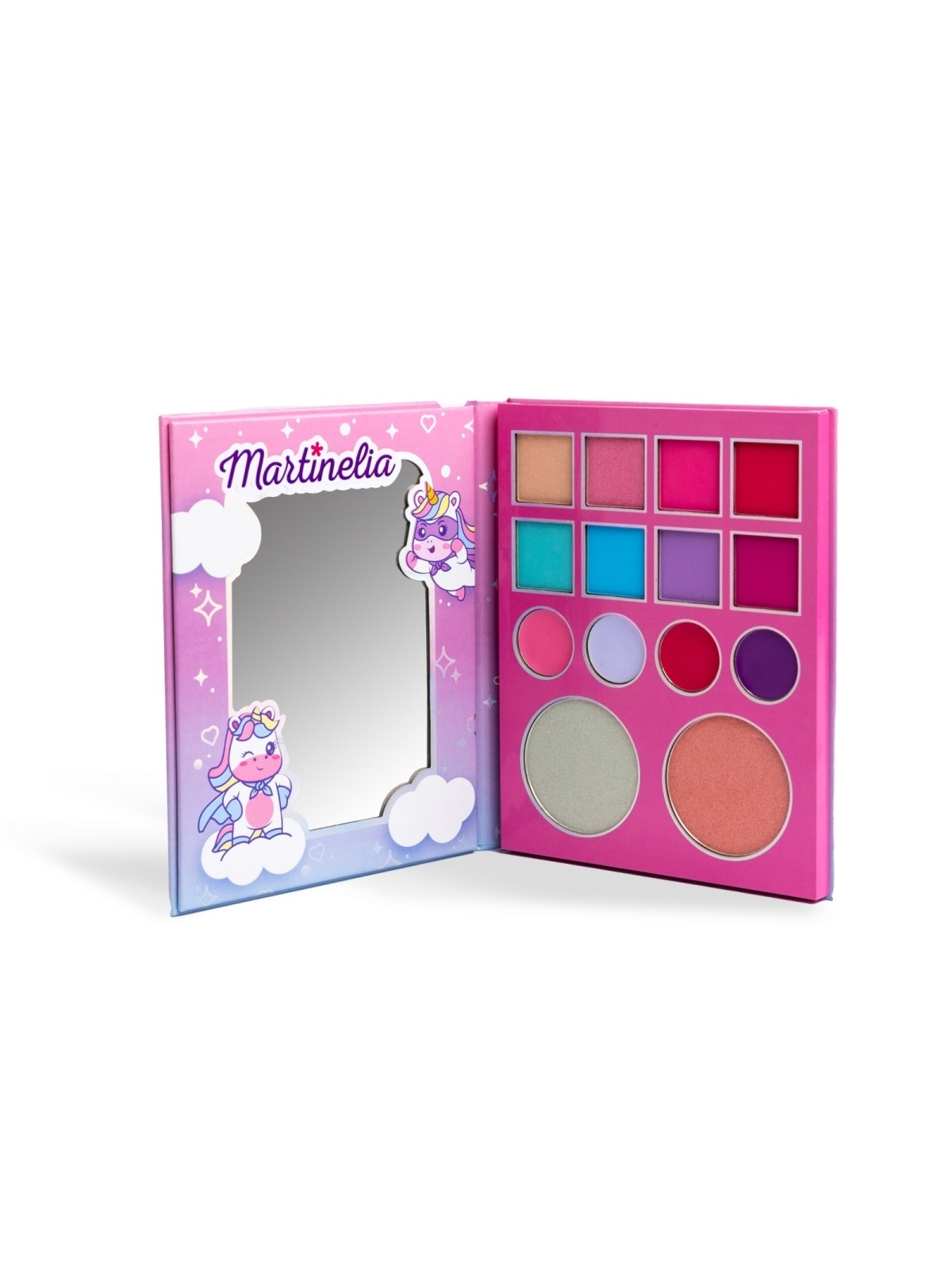 MARTINELIA Akių šešėliai (8 vnt.), lūpų blizgesiai (4 vnt.), švytėjimo veidui suteikianti priemonė (2 vnt.) vaikams