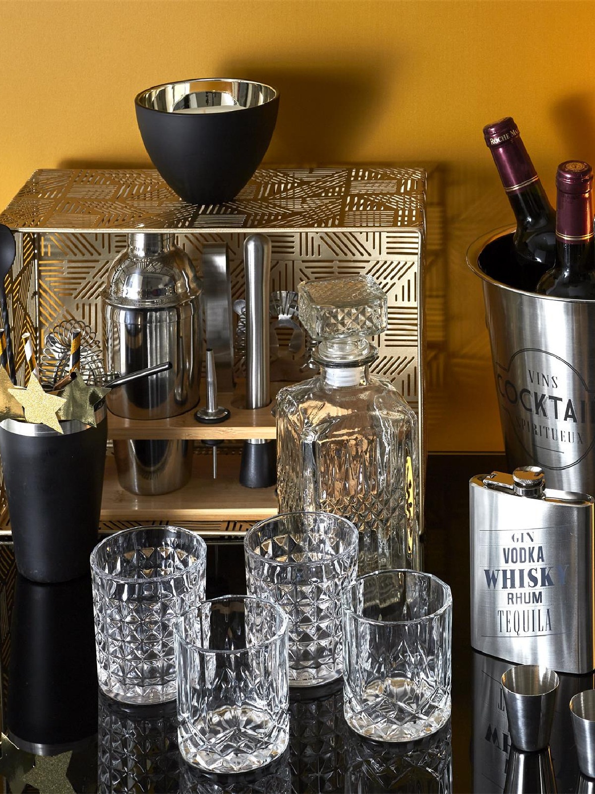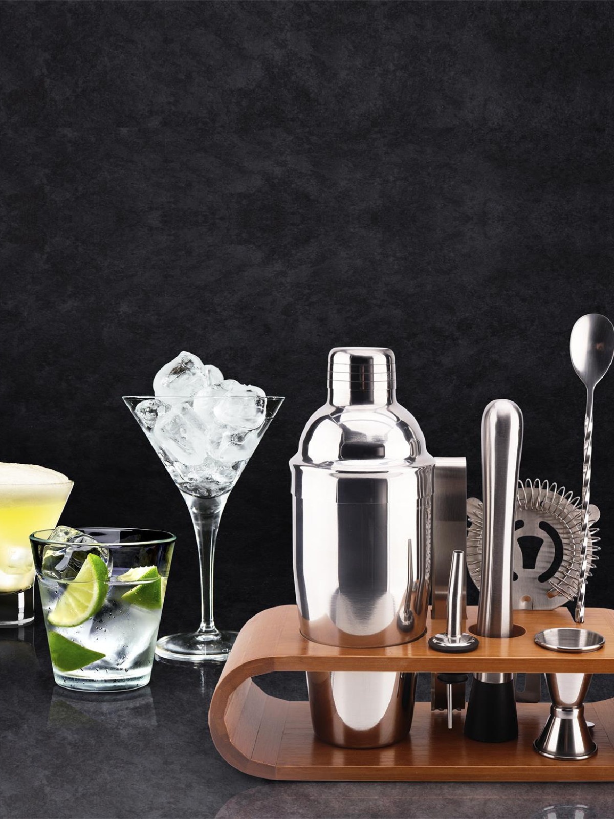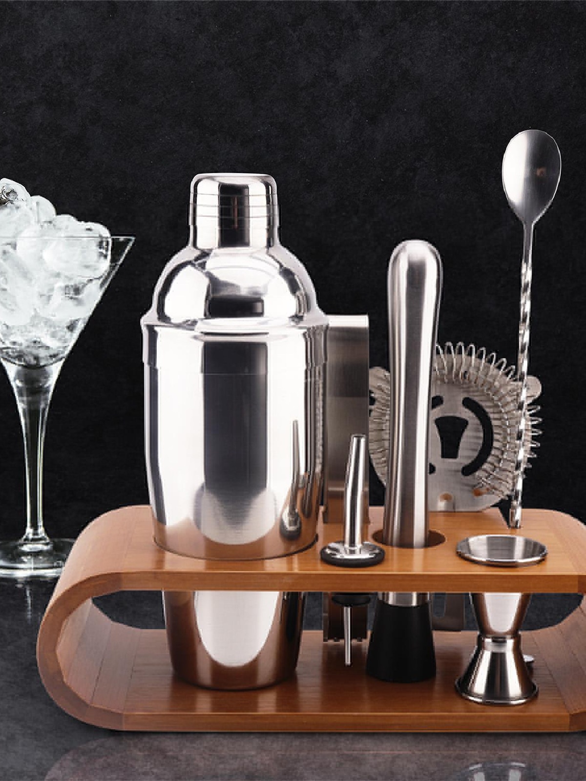 Rinkinį sudaro: stovas, plaktuvas, pilstytuvas, trintuvas, matavimo stiklinė, šaukštelis, koštuvas, žnyplės.