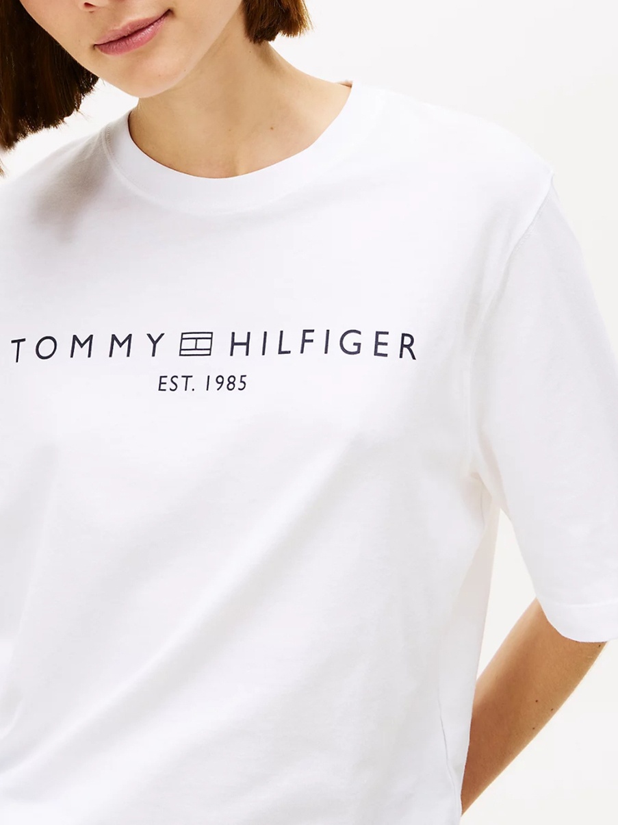 TOMMY HILFIGER Moteriški marškinėliai trumpomis rankovėmis, CORP LOGO TRAPEZE C-NK TEE